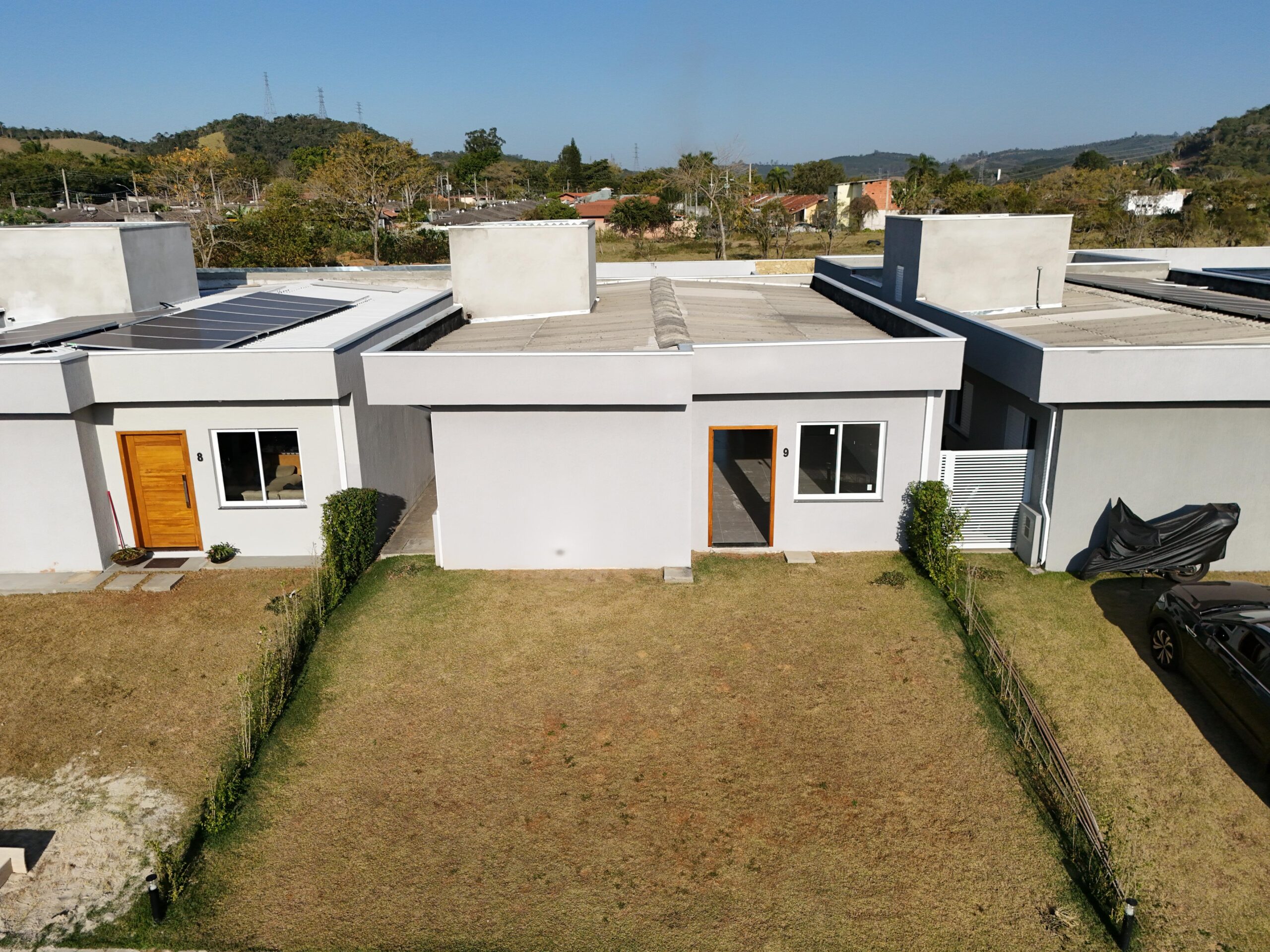 Casa térrea com quintal à venda dentro do condomínio Le Vrai em Guararema, ao todo são 400m2 de terreno e 100m2 de área total construída.